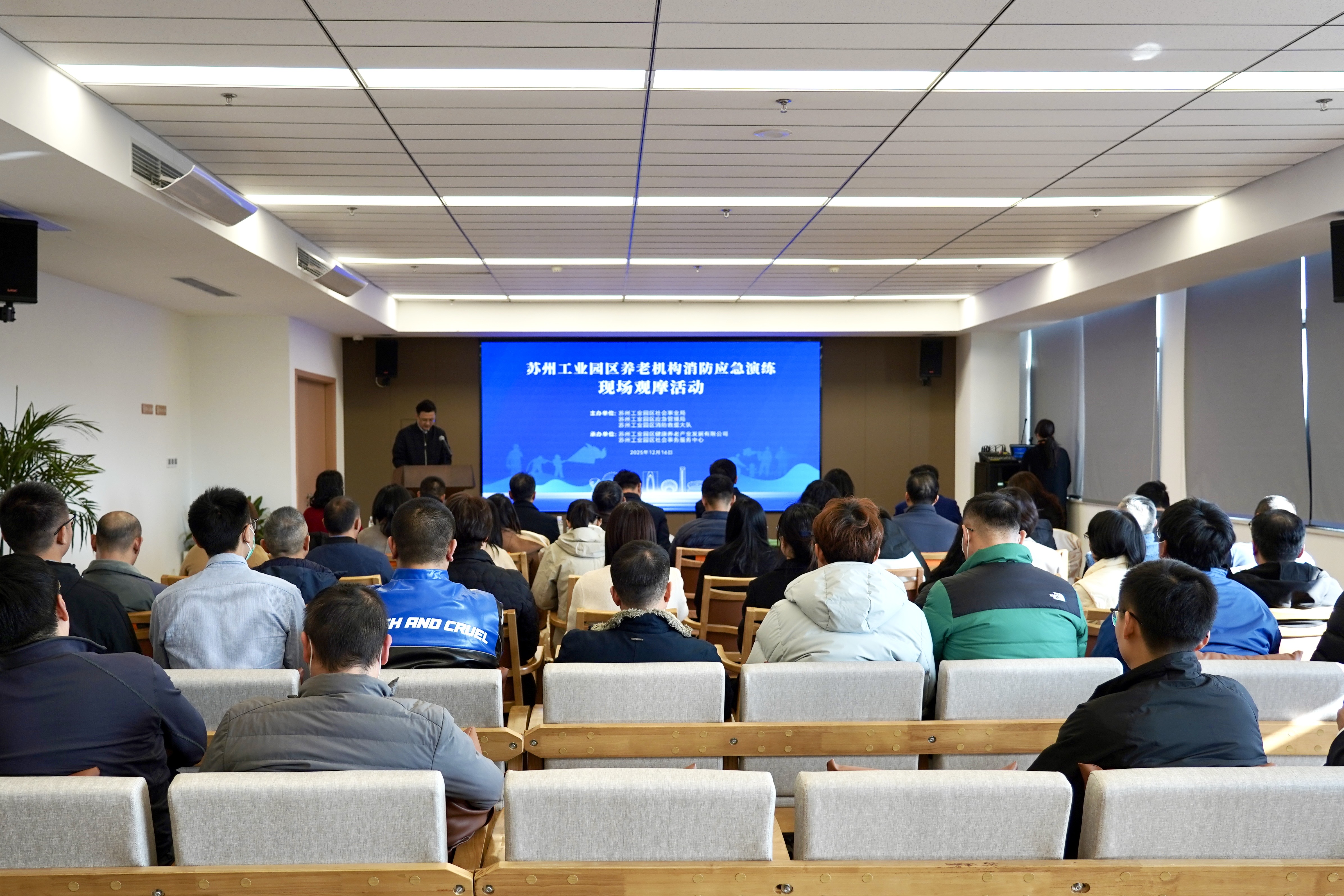 活動中,園區社會事業局通報了園區養老機構安全生產情況,宣布了養老機構消防應急救援結對共建單位名單,將通過資源整合、優勢互補、協同聯動,全面提升養老機構消防應急響應效率與實戰處置能力,共同筑牢園區養老領域安全防線。心圓護理院、唯亭街道區域性養老服務中心作交流發言。