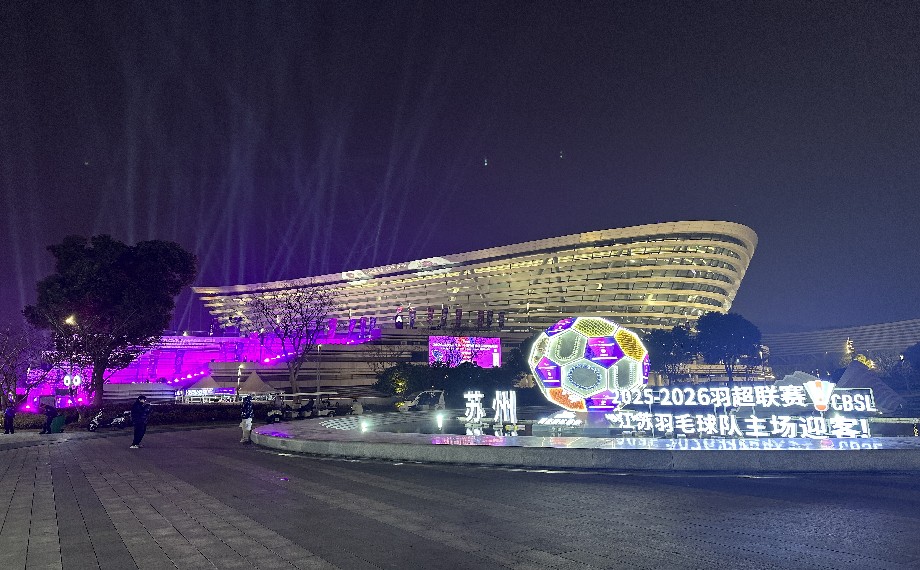 賽事的高水準呈現,離不開背后細致周全的籌備工作。蘇州奧體中心工作人員介紹,本次賽事嚴格按照A級賽事標準籌備,提前完成場地設施全面維護,燈光系統完全契合賽事專業標準,空調系統則參照蘇迪曼杯要求調控,在確保場館溫暖舒適的同時,實現“無風零風速”環境。值得一提的是,現場整體沿用2023蘇迪曼杯標志性的“昆腔紫”元素,從場館裝飾到氛圍布置均融入羽球特色,觀眾入口通道更搭配專業賽事燈光營造沉浸感,夜幕降臨時,奧體廣場流光溢彩,成為蘇州冬日里一道亮眼的體育風景線。