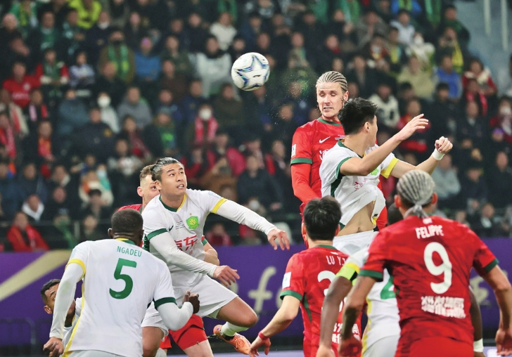 雙方球員在比賽中激烈拼搶。記者張健攝