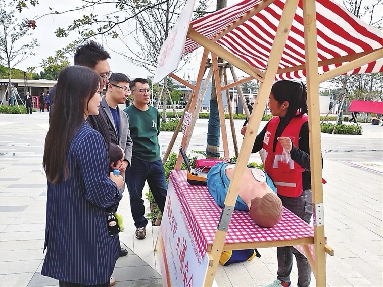 除了消防安全,活動還特別關注了心臟急救知識的普及。專業講師用通俗易懂的語言講解了“黃金4分鐘”的重要性,并利用AED訓練機和心肺復蘇模擬人,完整演示了從發現患者到使用AED的全過程。居民們踴躍參與模擬操作,在“開機后聽它說,跟著做”的直觀體驗中,掌握了這項關鍵時刻能挽救生命的技能。