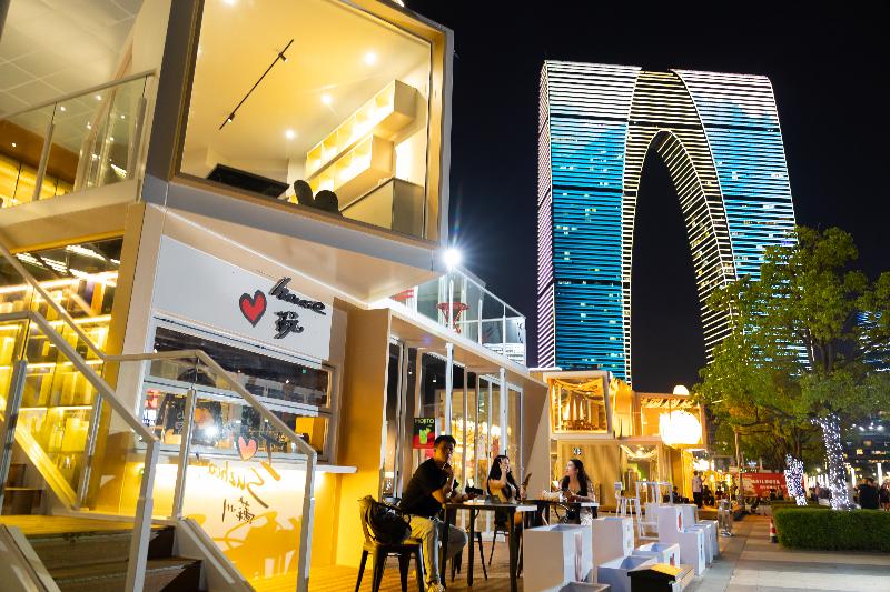 “日咖夜酒、藝趣共生”為特色的左岸158街區成為年輕人消費打卡新晉目的地。(蘇州園區提供)