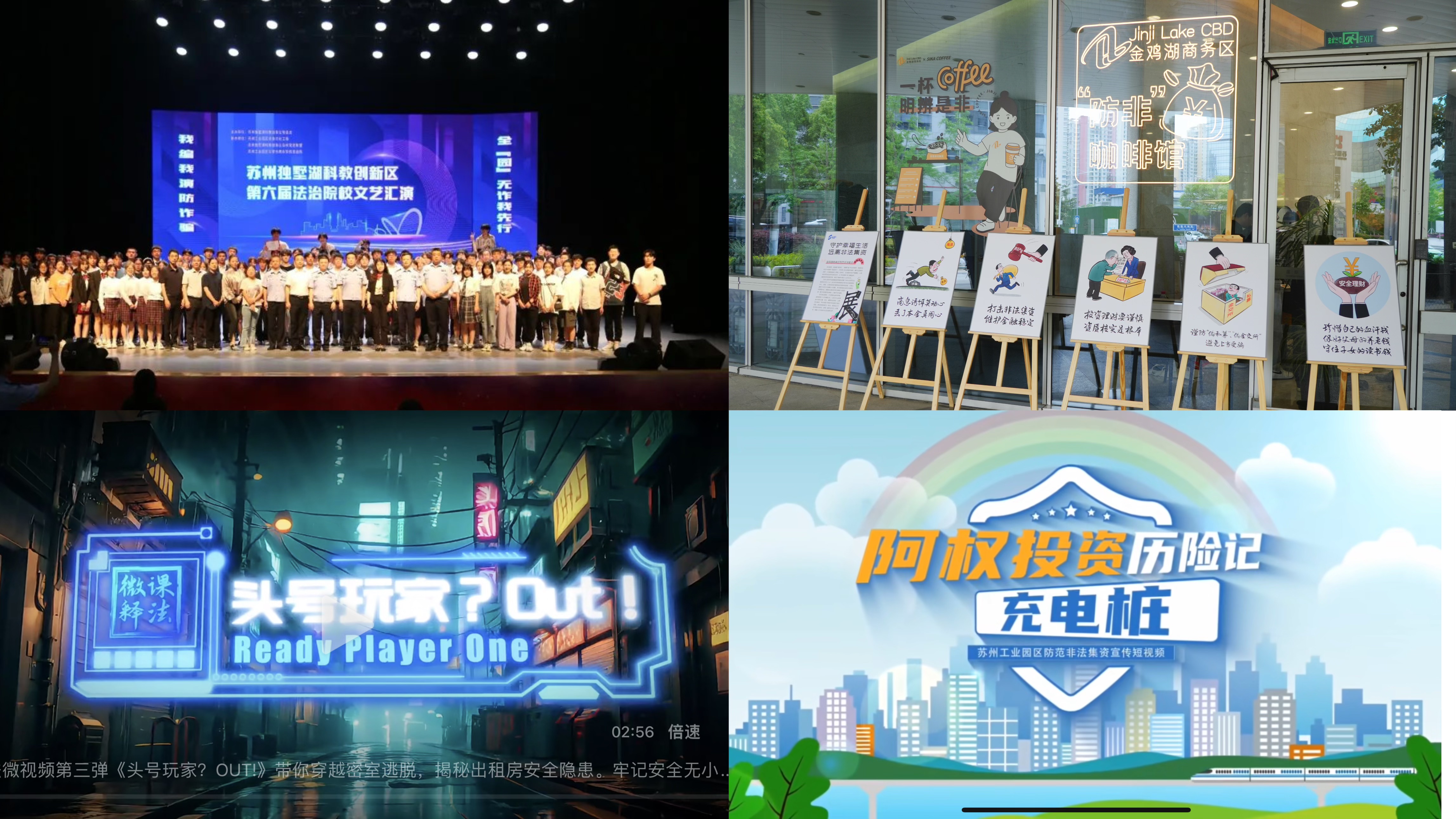 利用“報網端微屏”多平臺開展法治宣傳,形成“微信有推文、微博有互動、視頻有故事”的立體傳播格局。行政審批局將法治宣傳融入政務服務,梳理常見問答豐富政務服務網知識庫;金融發展和風險防范局開發“金融啄木鳥”小程序發布非法集資小講堂,拍攝《阿權投資歷險記》獲蘇州市防非短視頻大賽一等獎。特色普法品牌影響力凸顯,金雞湖商務區創新“防非主題咖啡館”“七分甜聯名活動”,將普法融入生活場景;園區檢察院精心培育“金色避雷針”普法品牌,原創微電影獲評最高檢“金融檢察微課堂”優秀獎;婁葑街道創新探索“法治新葑”品牌,將法治宣傳融入剪紙、錘揲、緙絲等非遺文化。