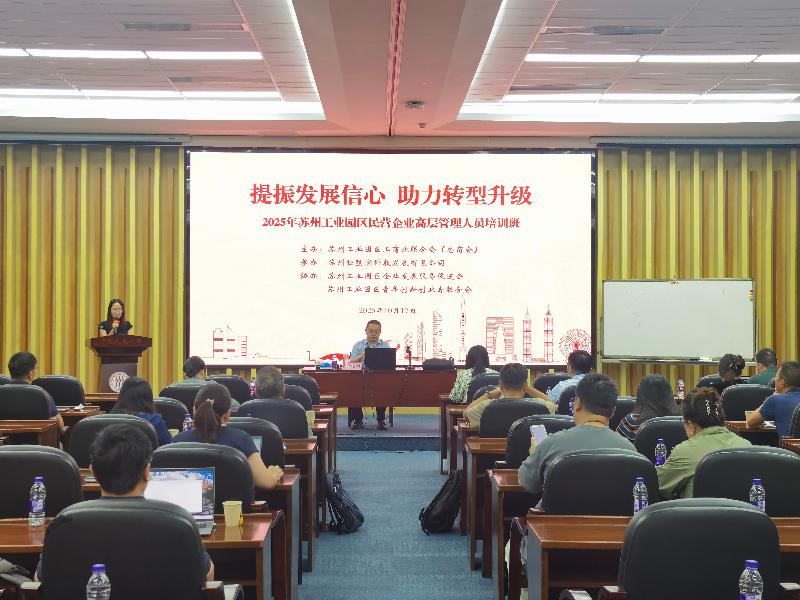 10月16日至17日,2025年蘇州工業園區民營企業高層管理人員培訓班在中國人民大學(蘇州校區)成功舉辦。本次培訓由園區工商聯(總商會)主辦,旨在幫助園區廣大民企負責人開拓視野、認清形勢,準確把握新時代中國穩中求進的大趨勢,不斷提高民企的內生動力。兩天共超過200人次參加培訓。