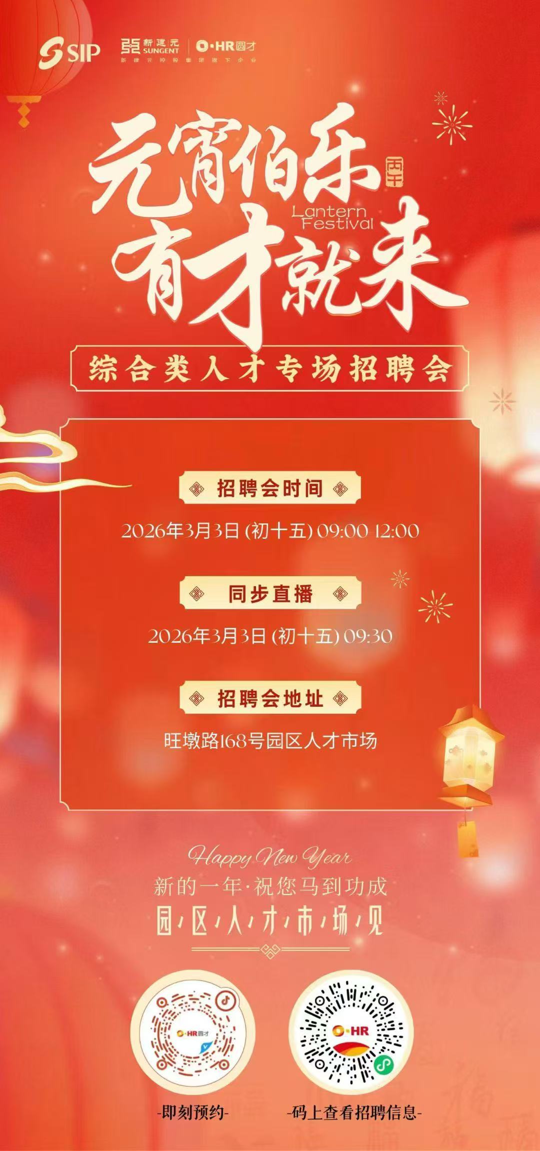 燈火起,元宵至。新春的喜悅還未散去,月圓人圓的元宵佳節已款款而來。蘇州工業園區精心籌備一系列年味十足、趣味滿滿的元宵活動,傳統雅趣與新潮體驗交織,團圓溫情與城市活力碰撞,來園區共赴佳節,把新一年的平安喜樂盡數帶回家。