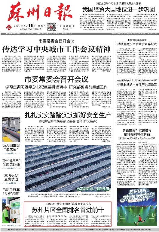 《蘇州日?qǐng)?bào)》2025年07月19日A01版