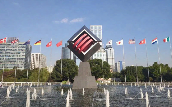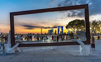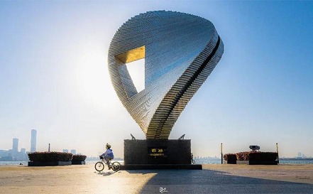 “Harmony”, a 12-meter-tall sculpture on the west bank of Jinji Lake, was created by a Singaporean sculptor. It symbolizes the close partnership between China and Singapore.