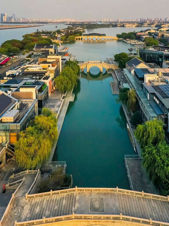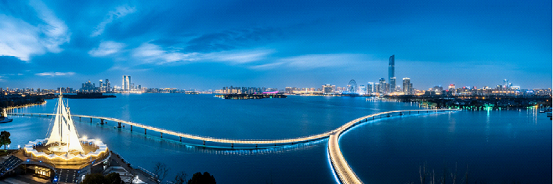 The buildings on the banks of the lake, like the Suzhou IFS, create a contrast to the natural scenery. As a sign of the modern prosperity, they showcase another kind of beauty, especially when they are lit up in the night.
