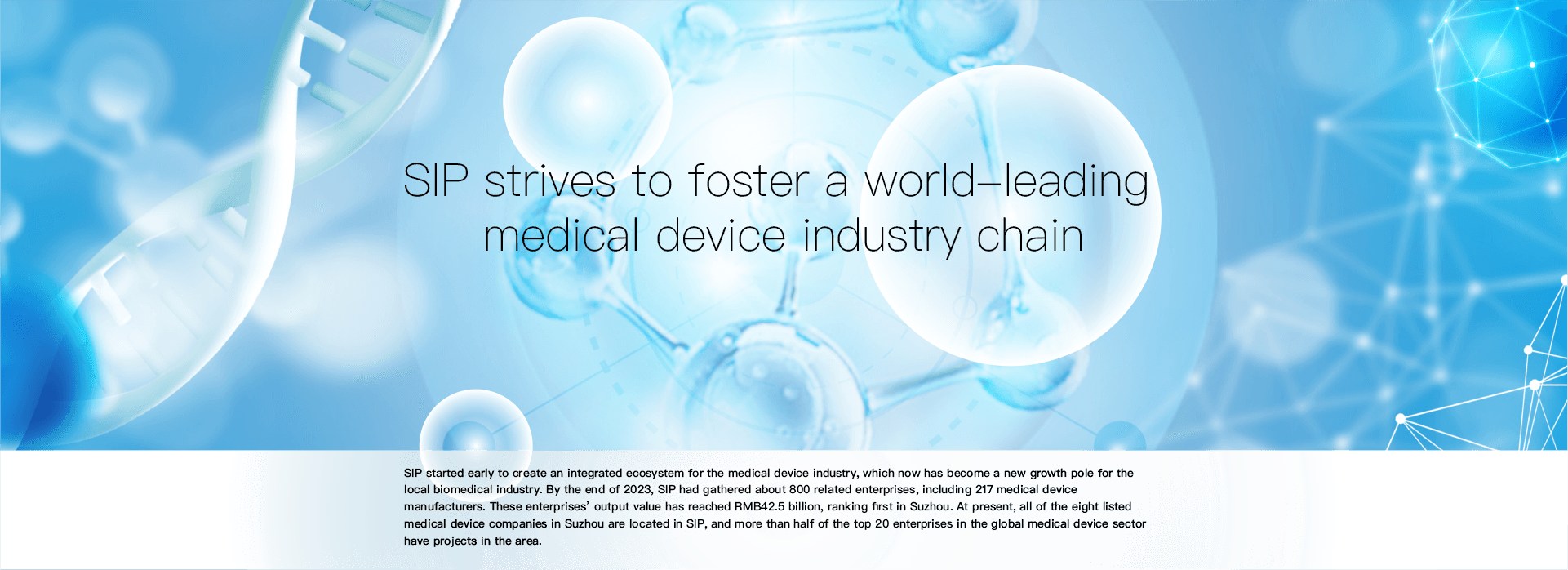 SIP’s efforts in fostering a world-leading medical device industry chain have paid off. Suzhou’s biomedicine and high-end medical equipment clusters with SIP as the core have been declared by the Ministry of Industry and Information Technology of China as advanced manufacturing clusters.