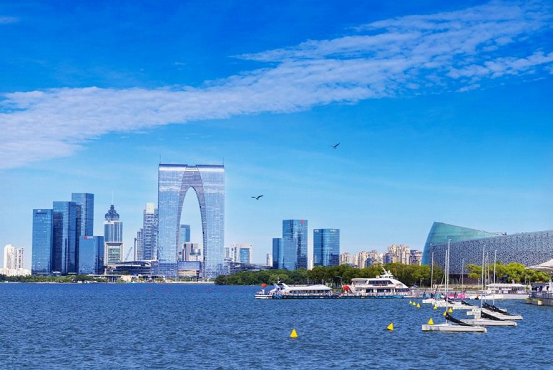 For those planning a one-day tour, the route starting from the Gate of the Orient or Suzhou Center is recommended. In the morning, the travelers can take photos of the landmark buildings, visit the market full of creative products, sample local snacks, and board a boat at the wharf to visit the Taohua Island in the center of Jinji Lake.