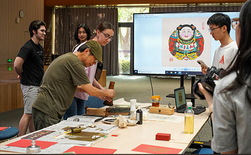 The event incorporated an intangible cultural heritage fair where the participants could learn about and experience traditional Chinese crafts of making woodcut prints, cloth, clay figurines and other daily use articles and art works, try on traditional costumes, watch the lianxiang (a traditional Chinese folk dance performed by dancers with bamboo or wooden sticks in hands) performance, and taste snacks that are local specialties.