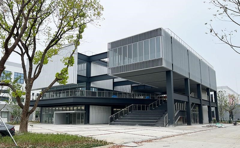 The Xinshengli Photosynthesis Center, with aluminum-profile curtain walls and solid walls finished with fair-faced concrete-like paint featuring a predominantly black, gray and white color scheme, is going to come into use in SIP’s Xinshengli ? Low-altitude Economy Industrial Park later this month.