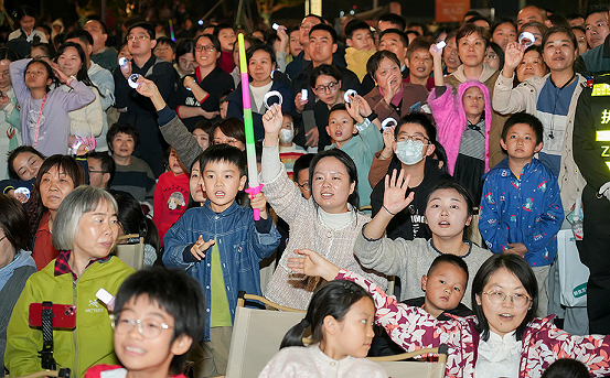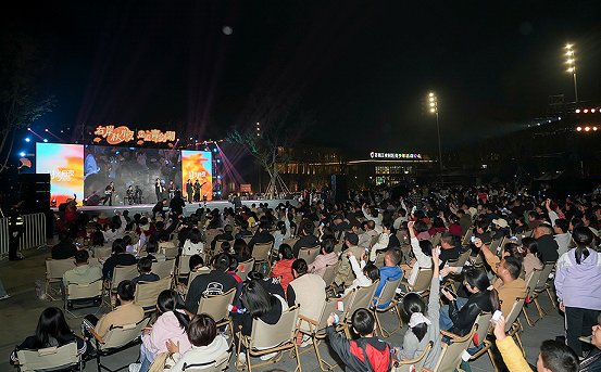 From the moonlit Qingjian Lake, a gentle breeze carried the sweet fragrance of osmanthus. The audience, seated or standing, sang along to the familiar tunes, filling the air with warmth and resonance.