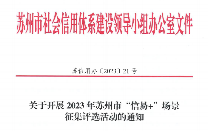 2023年蘇州市“信易+”場景征集評選活動來啦!