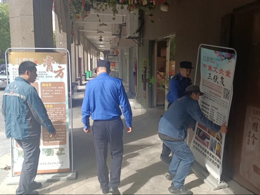 圍繞開放式商業(yè)街區(qū)精細(xì)化管理要求,以落實商戶“門前三包”責(zé)任制度為抓手,通過上門宣教、知識培訓(xùn)、書面告知等方式,指導(dǎo)商戶聚焦版面破損、結(jié)構(gòu)殘缺及存在安全隱患的戶外廣告和招牌設(shè)施進(jìn)行自檢自查,及時消除安全隱患,筑牢安全底線。今年以來,已累計拆除商業(yè)街違規(guī)戶外廣告12處,面積130平方米,共同營造共建共治共享的良好氛圍。