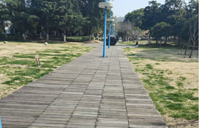 中央公園木棧道建成使用多年,因木龍骨基礎結構老化腐蝕,導致上層賈拉木板出現松動、起伏及緊固件外露等問題,既影響市民游園安全,也有損景觀整體風貌。經專業技術評估確認,原鋪設的賈拉木板材雖歷經風雨,但其材質優良,主體部分性能仍滿足使用要求,具備較高再利用價值。基于此,確立了“最大化利用舊材、系統性加固基礎、精細化修繕更新”的改造原則。