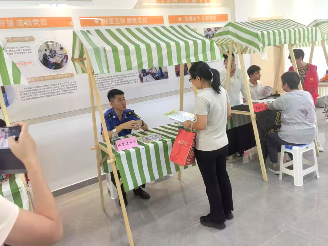 曾經(jīng),城管執(zhí)法隊員在居民印象中總是坐在執(zhí)法車里,或是隊列巡查的形象。如今在青春家園社區(qū),他們每月都會在黨群服務(wù)中心的居民服務(wù)市集“擺攤設(shè)點”,面對面為居民解答疑問。