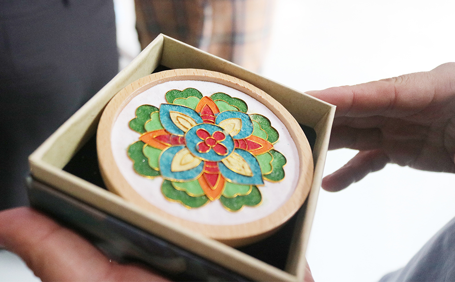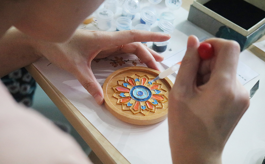 正是因為以湯斌為代表的良臣傾力為民,社會才能進步、時局才能穩(wěn)固,這也為乾隆時期景泰藍的復興創(chuàng)造了條件。景泰藍,即掐絲琺瑯工藝,是中國的著名特種金屬工藝品類之一。在隨后的文化體驗課環(huán)節(jié),大家興致勃勃地在老師的講解和幫助下參與到景泰藍手工技藝的體驗活動中,以金絲作胎,填充色釉,制作出屬于自己的景泰藍工藝蓮花杯墊、書簽、小鏡,用蓮心現(xiàn)廉韻,感受傳統(tǒng)文化魅力。