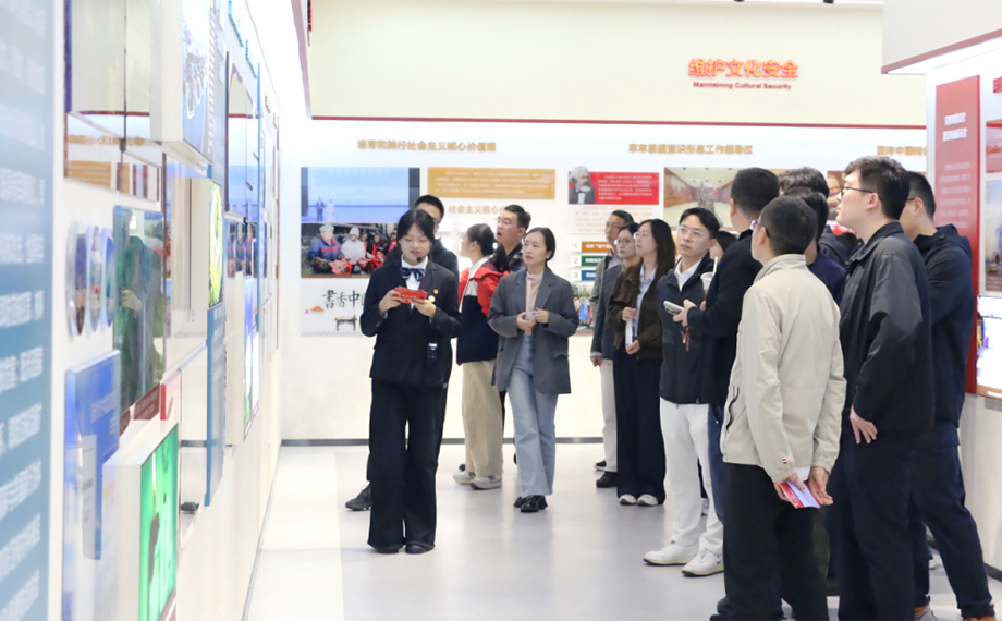 在參觀學習環節,大家來到蘇州工業園區國家安全教育館,展館通過展板、視頻、互動等形式,多維呈現了政治安全、軍事安全、經濟安全、網絡安全等多個關鍵領域的國家安全立體圖景。在講解員的引領下,學員們近距離感受國家在捍衛安全各領域取得的重大突破與輝煌成就,切實感受到蘇州市、園區在維護國家安全工作中的堅實足跡與創新成果。“每一塊展板都是無聲的警鐘,每一個案例都是生動的教材。”一位年輕干部在觸摸屏前觀看后深有感觸。