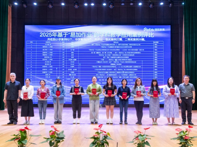 項目組工作匯報之后,與會領(lǐng)導(dǎo)為作業(yè)案例評比獲獎的教師個人和學(xué)校進行頒獎表彰。