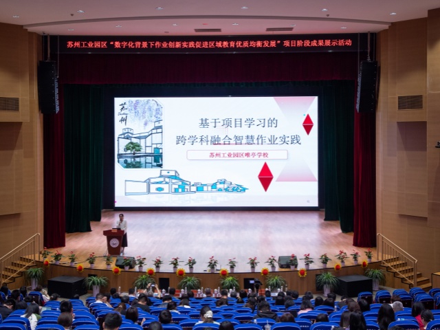 為進一步推進江蘇省義務(wù)教育課程與教學(xué)改革項目《數(shù)字化背景下作業(yè)創(chuàng)新實踐促進區(qū)域教育優(yōu)質(zhì)均衡發(fā)展的研究》的實踐與探索,凝練園區(qū)數(shù)字化賦能教育教學(xué)改革的新經(jīng)驗,促進區(qū)域教育優(yōu)質(zhì)均衡發(fā)展。5月13日下午,“數(shù)字化背景下作業(yè)創(chuàng)新實踐促進區(qū)域教育優(yōu)質(zhì)均衡發(fā)展”項目階段成果展示活動在蘇州工業(yè)園區(qū)唯亭學(xué)校順利開展。園區(qū)教師發(fā)展中心主任葉鵬松,副主任許鳳、胡修喜、戴小駒等相關(guān)領(lǐng)導(dǎo)出席了本次活動,同時還有部分學(xué)科教研員以及來自全區(qū)義務(wù)教育階段學(xué)校的教學(xué)分管校長、教導(dǎo)主任、學(xué)科骨干教師等參與學(xué)習(xí)和交流。活動通過課堂教學(xué)展示、項目校經(jīng)驗分享、項目組工作匯報等多種形式,全方位呈現(xiàn)數(shù)字化背景下作業(yè)創(chuàng)新實踐的階段性碩果,為構(gòu)建更具活力的教育生態(tài)注入強勁動能。
