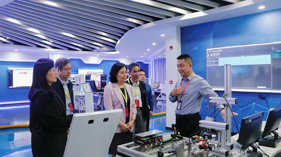 調研組一行首先來到江蘇匯博機器人技術股份有限公司,參觀公司展廳、1+X實訓樣板間等,聽取公司開展校企合作,在工業機器人、工業互聯網等領域聯合培養科技人才的模式和成果介紹。